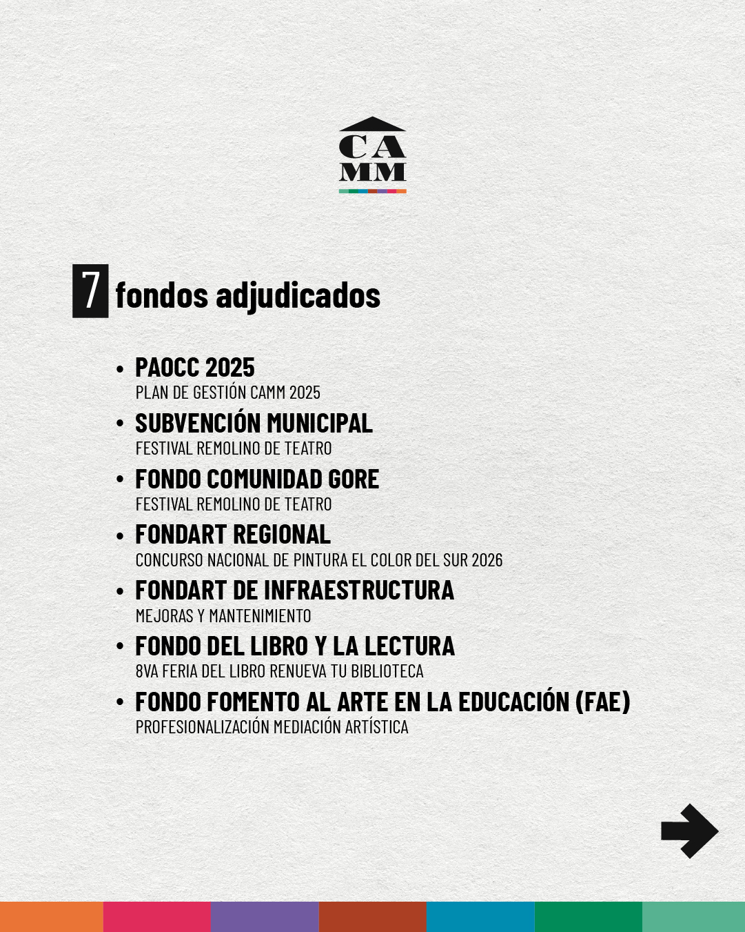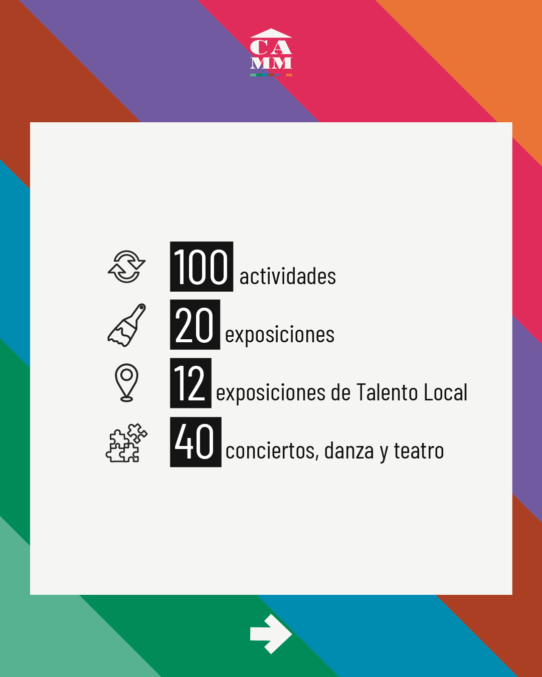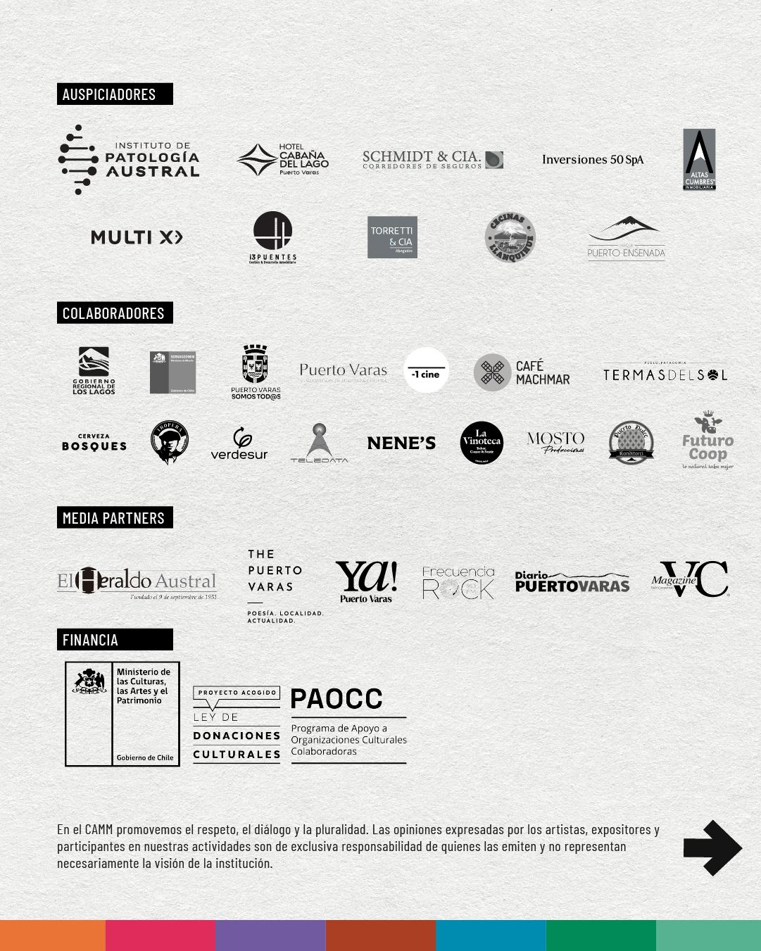 Gracias a artistas, equipos, las instituciones públicas y privadas, colaboradores y auspiciadores que confiaron en nuestro trabajo; y muy especialmente a nuestros públicos por cada momento y por dar vida a nuestro CAMM.